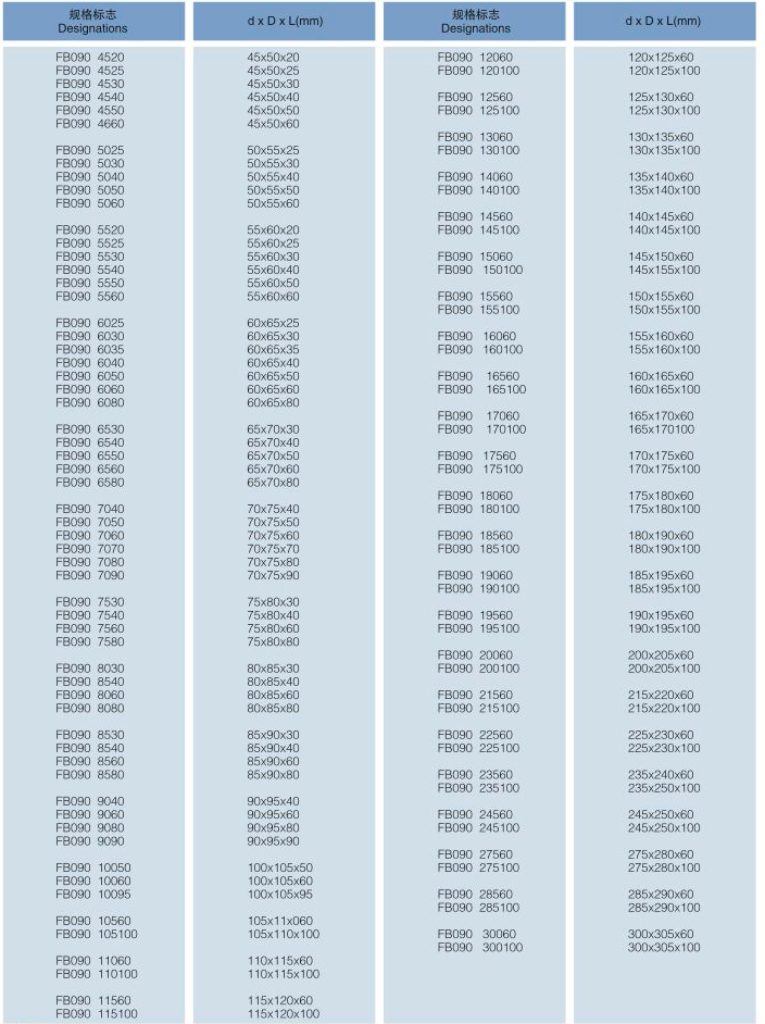 FB090標(biāo)準(zhǔn)襯套尺寸